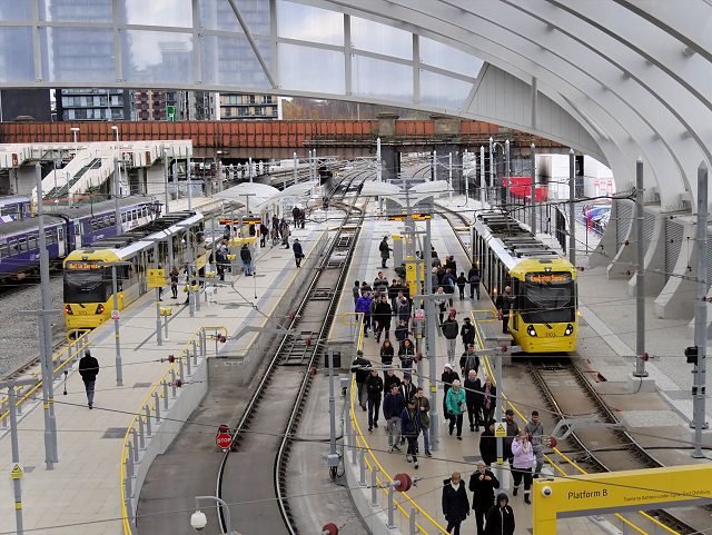 Diferente de Londres, Manchester investiu no Tram (o trem ao ar livre), mais conhecido como Metrolink. O tram oferece viagens fáceis e rápidas no centro e ao redor da cidade. Ele conecta todas as principais estações ferroviárias e atrações turísticas de Manchester. Um tram costuma passar a cada poucos minutos e normalmente funciona entre ás 3 da manha até meia noite.